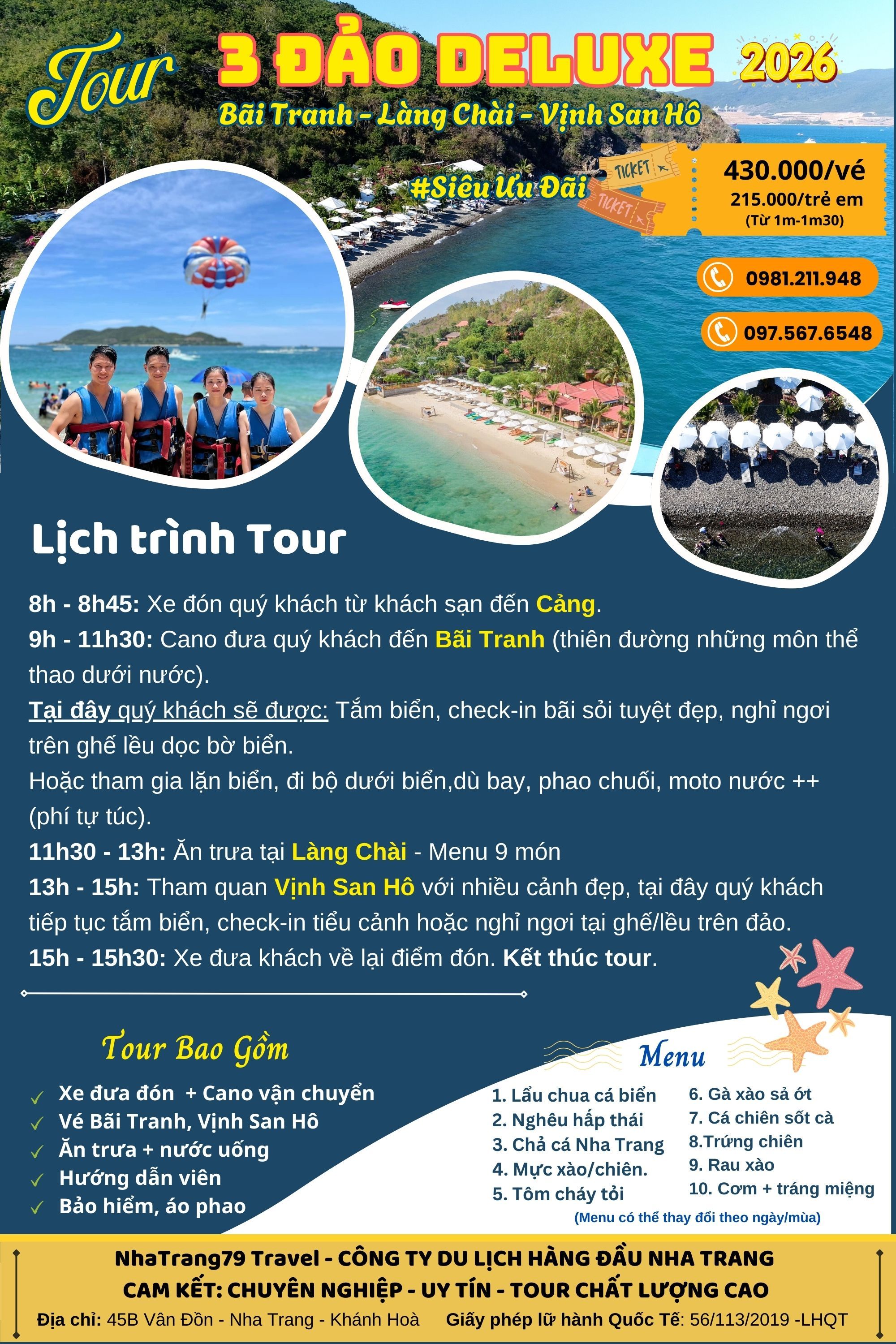 Nha Trang 79 Travel tự hào là công ty du lịch uy tín và tin cậy nhất tại Nha Trang, với nhiều năm kinh nghiệm trong ngành du lịch, chúng tôi chuyên bán tour online, offline, cam kết tour chất lượng cao và không phát sinh thêm chi phí. Nha Trang 79 Travel chính là sự lựa chọn hoàn hảo dành cho bạn.