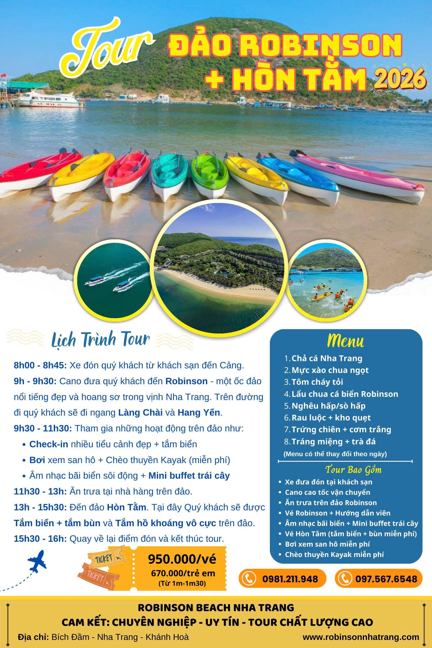 - Đặt tour đảo Robinson Nha Trang tại những công ty du lịch lữ hành quốc tế uy tín để đảm bảo về lịch trình cũng như chất lượng trong tour được trọn vẹn nhất.